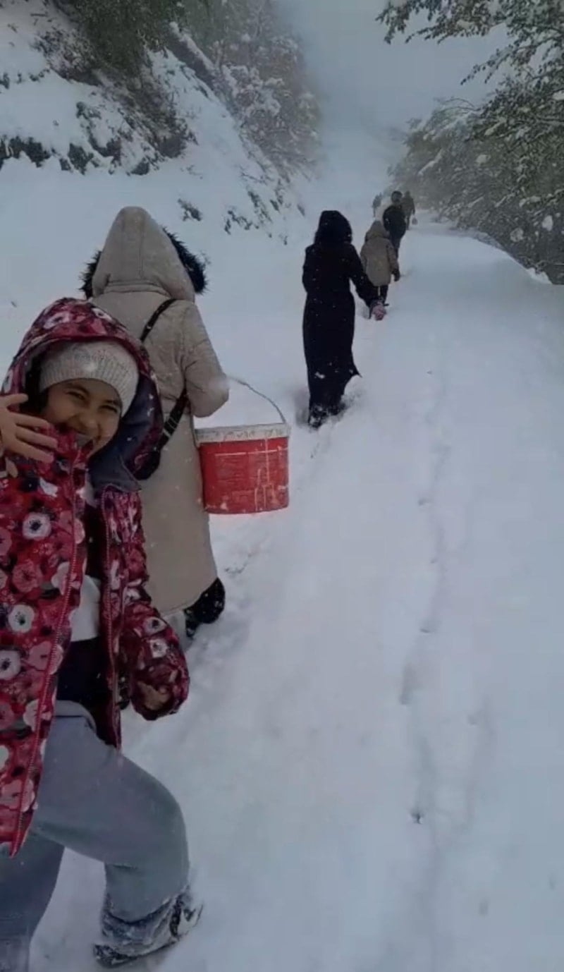 Kar yağışı nedeniyle hayatın olumsuz etkilendiği noktalarda insanların kapalı olan yolda yürüdükleri anlar ise cep telefonu kameraları tarafından kaydedildi.