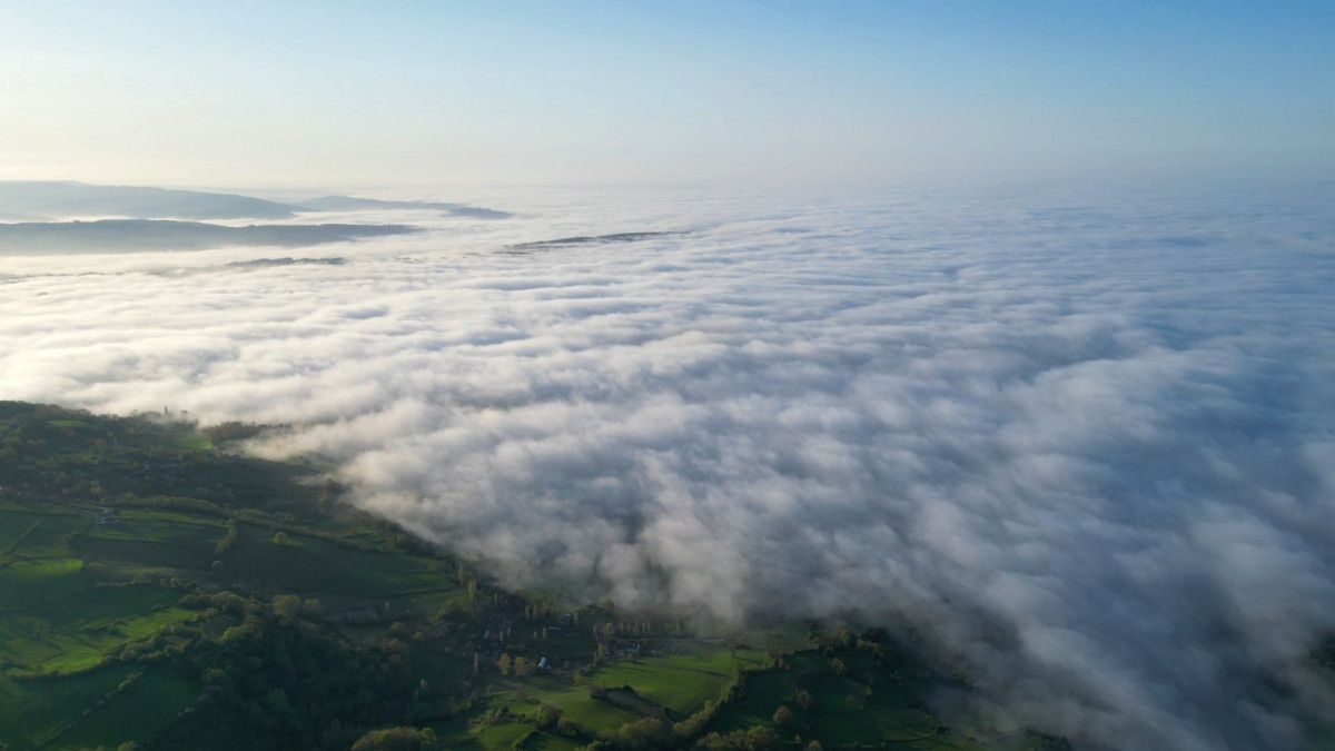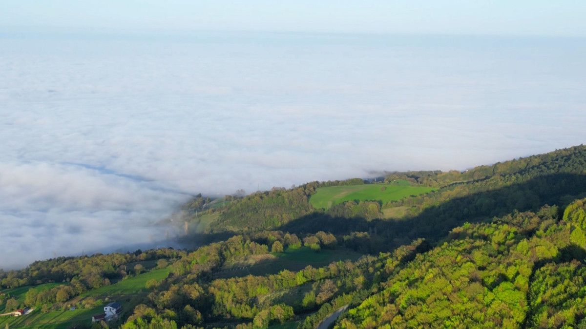 Havadan da görüntülenen sisli manzara, izleyenlere görsel bir şölen yaşattı.