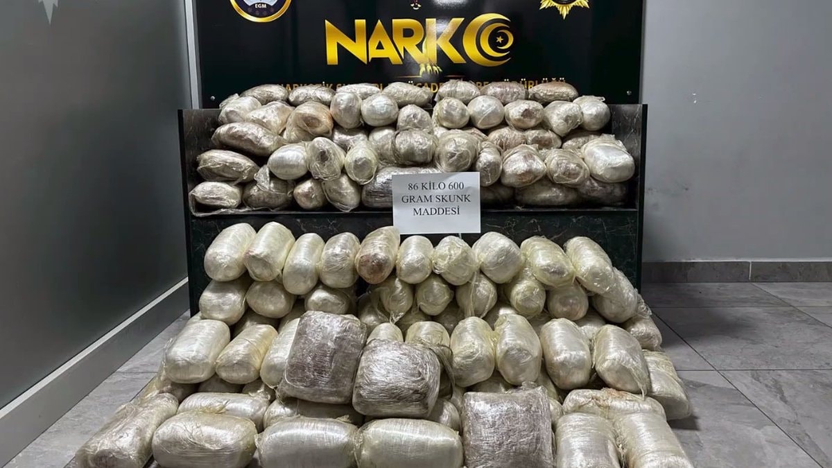 Yapılan aramada, aracın bagaj kısmında 119 parça halinde toplam 86 kilo 600 gram skunk uyuşturucu maddesi ele geçirildi.