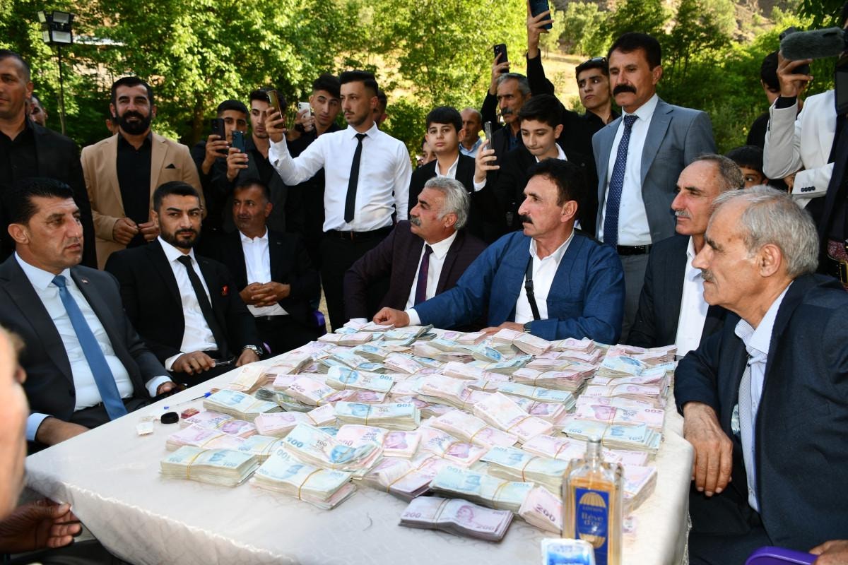 Düğünde geline 2 kilo altın, damada 2 milyon 750 bin lira takıldı. Düğüne ilçe protokolü, siyasi partilerin temsilcileri, sivil toplum kuruluşlarının temsilcileri ve çevre aşiretlerin liderleri de katıldı.