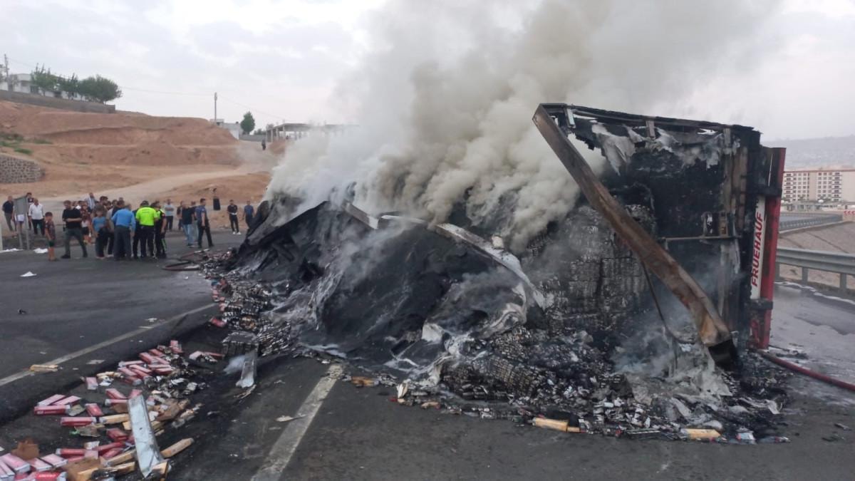 Şırnak istikametinden Cizre ilçesine gitmekte olan Abdulcelil Öklü yönetimindeki sigara yüklü kamyon, frenlerinin boşalması sonucu virajı alamayarak bariyerlere çarpıp devrildi.
