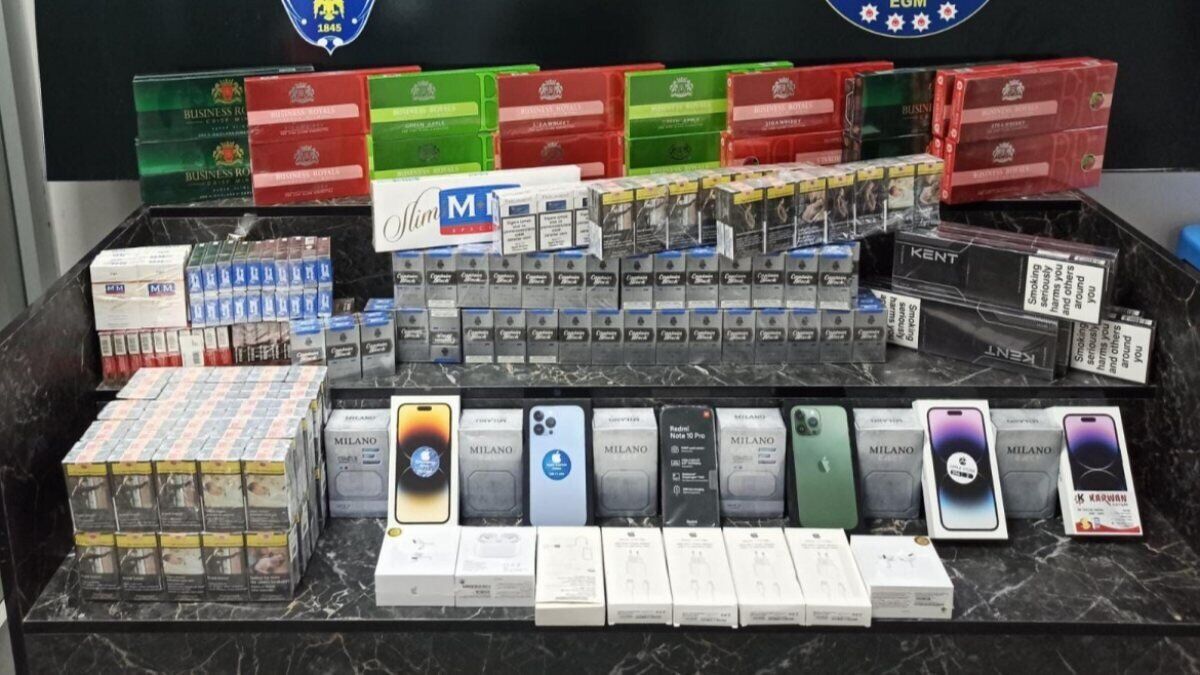 Şüphelilerin adreslerindeki aramalarda 1150 paket kaçak sigara, 100 puro, 29 cep telefonu, 21 cep telefonu aksesuarı ve bir miktar uyuşturucu madde ele geçirildi.