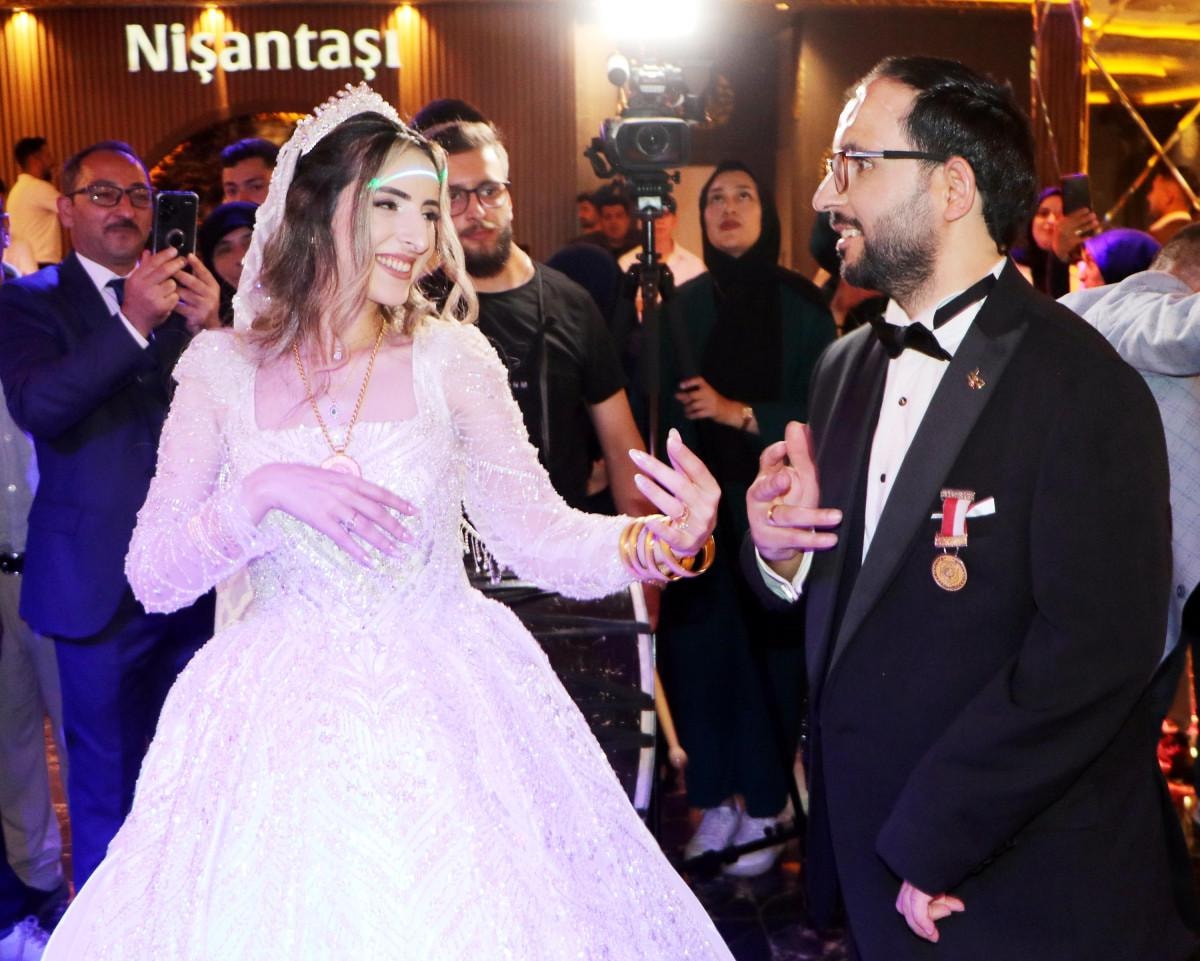 Düğünün yapıldığı salona damadın silah arkadaşları, Ali Kınık'ın ‘Yalnız değilsin’ şarkısı eşliğinde, ellerinde Türk bayrağı ile girdi.