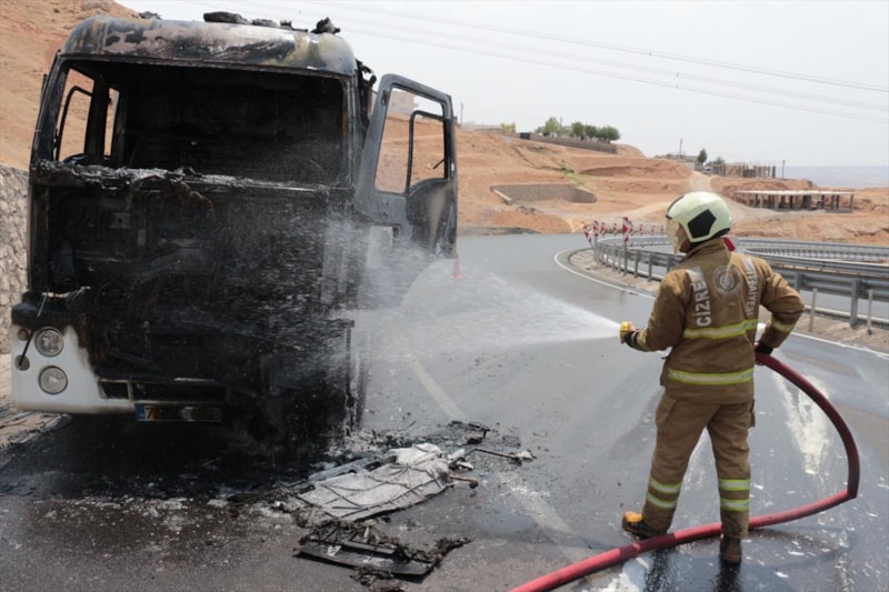 Cizre ilçesinde seyir halindeki tırda çıkan yangın, itfaiye ekiplerince söndürüldü. Olayla ilgili polis ekipleri tarafından başlatılan geniş çaplı soruşturma sürüyor.