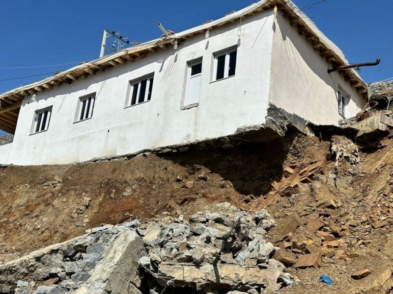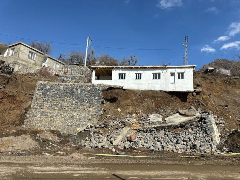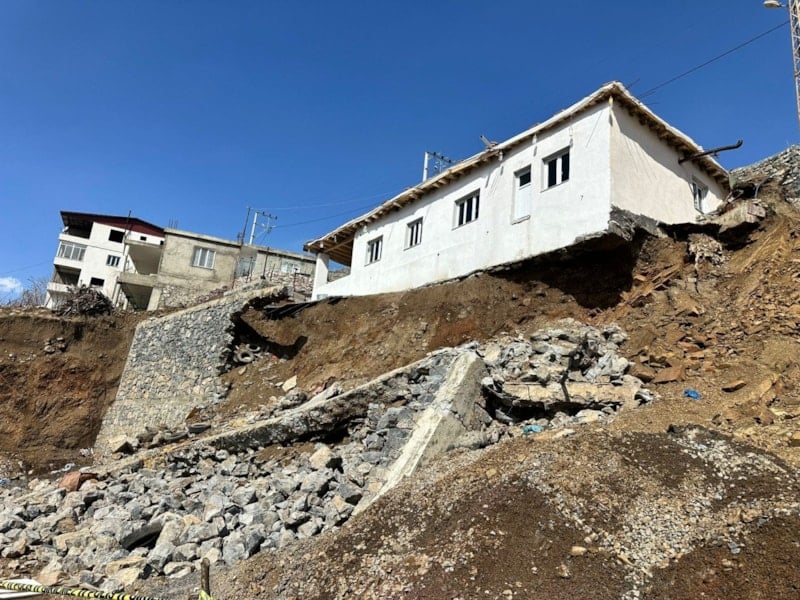Beytüşşebap ilçesinde yağış nedeniyle bir evin alt tarafındaki istinat duvarı çökerken kayan toprak nedeniyle temeli ortaya çıkan ev, kullanılamaz hale geldi.