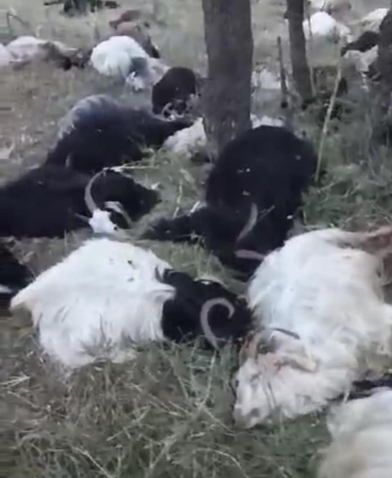 Şırnak'ın Uludere ilçesine bağlı Yemişli köyünde dün akşam saatlerinde gök gürültülü sağanak yağış sonrası dağda otlatılan keçi sürüsünün ortasına yıldırım düştü.