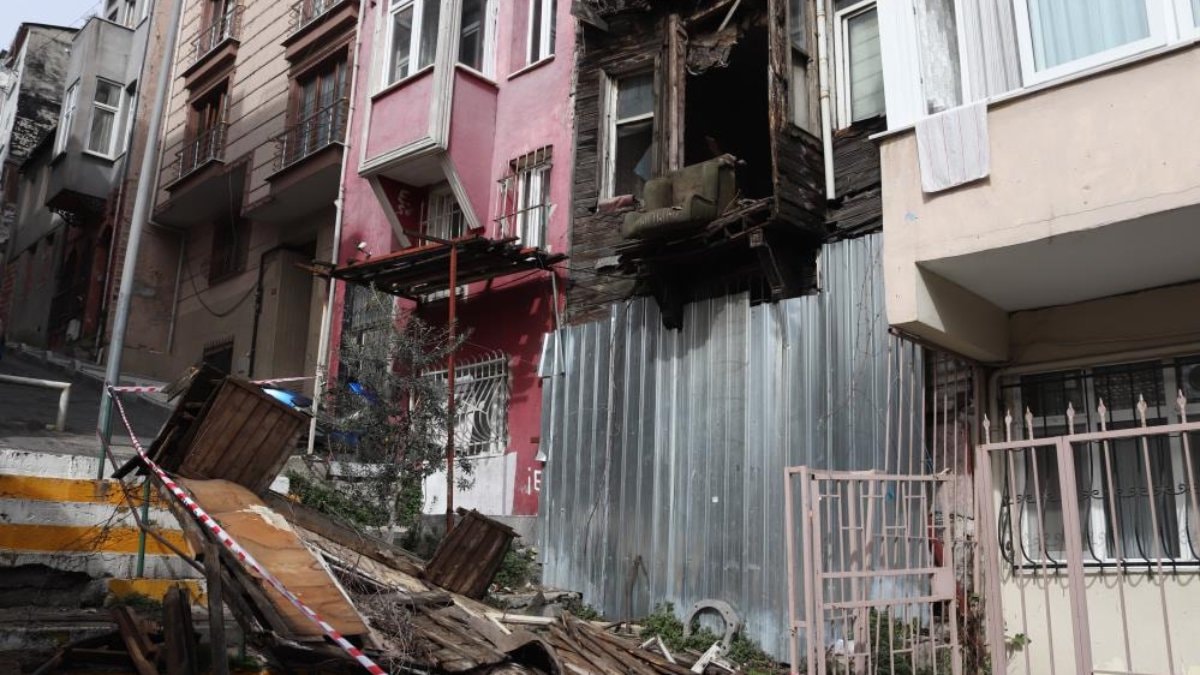 Şişli'de 2 katlı metruk bina yaya yoluna doğru çöktü