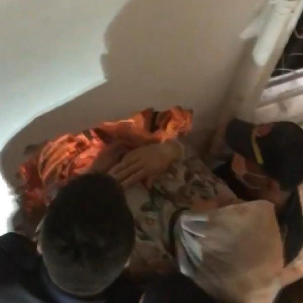 İtfaiye ekiplerinin duvarı kırarak 3 kişiyi kurtarma anı bir cep telefonu kamerasına yansıdı.