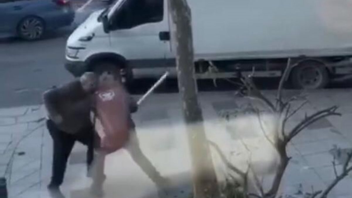 Kavga sırasında yere düşen İSPARK görevlisi ve kamyonet sürücüsü yerde boğuşurken yoldan geçen bir kişi, yere düşen sopayı ayağıyla iterek uzaklaştırdı.