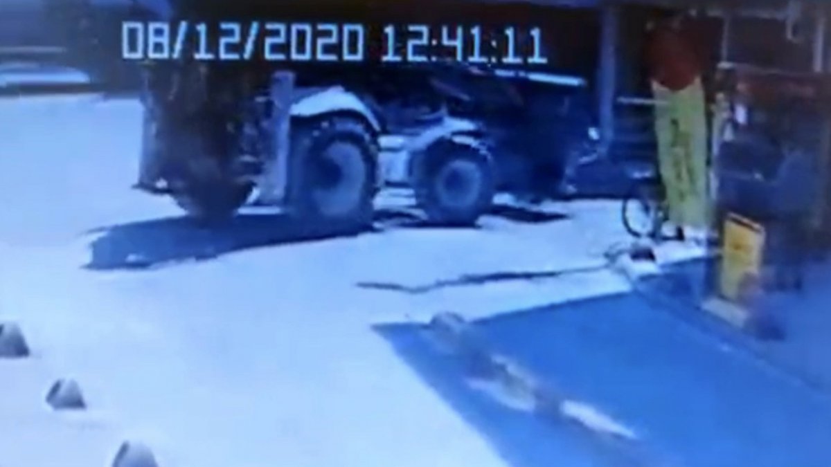 Kepçelerinin uçlarının çarpması sonucu kadın yere savrulurken, kalçasının kırıldığı tespit edildi. Yaşanan o anlar ise güvenlik kameralarına yansıdı.