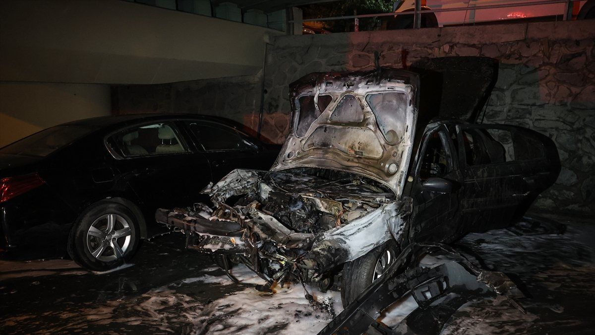 Otomobil yangın nedeni ile kullanılamaz hale gelirken, polis yangının çıkış nedenine ilişkin çalışma başlattı.