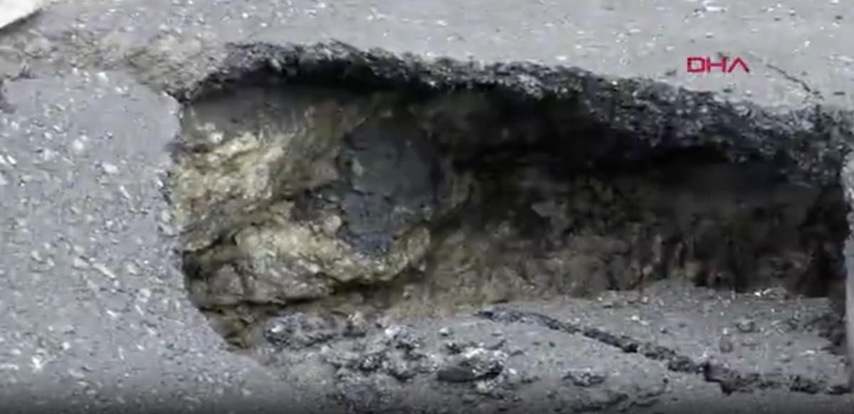Yoldaki yaklaşık bir metre derinliğindeki göçük nedeniyle sürücüler zor anlar yaşadı.