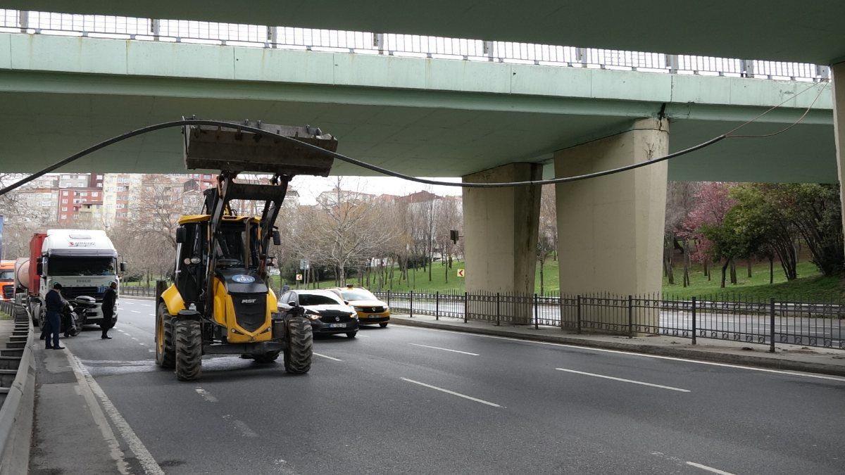 İstanbul'un Şişli ilçesi Piyalepaşa Bulvarı üzerinde bulunan üst geçitteki elektrik kablolarının olduğu boru yola düştü.