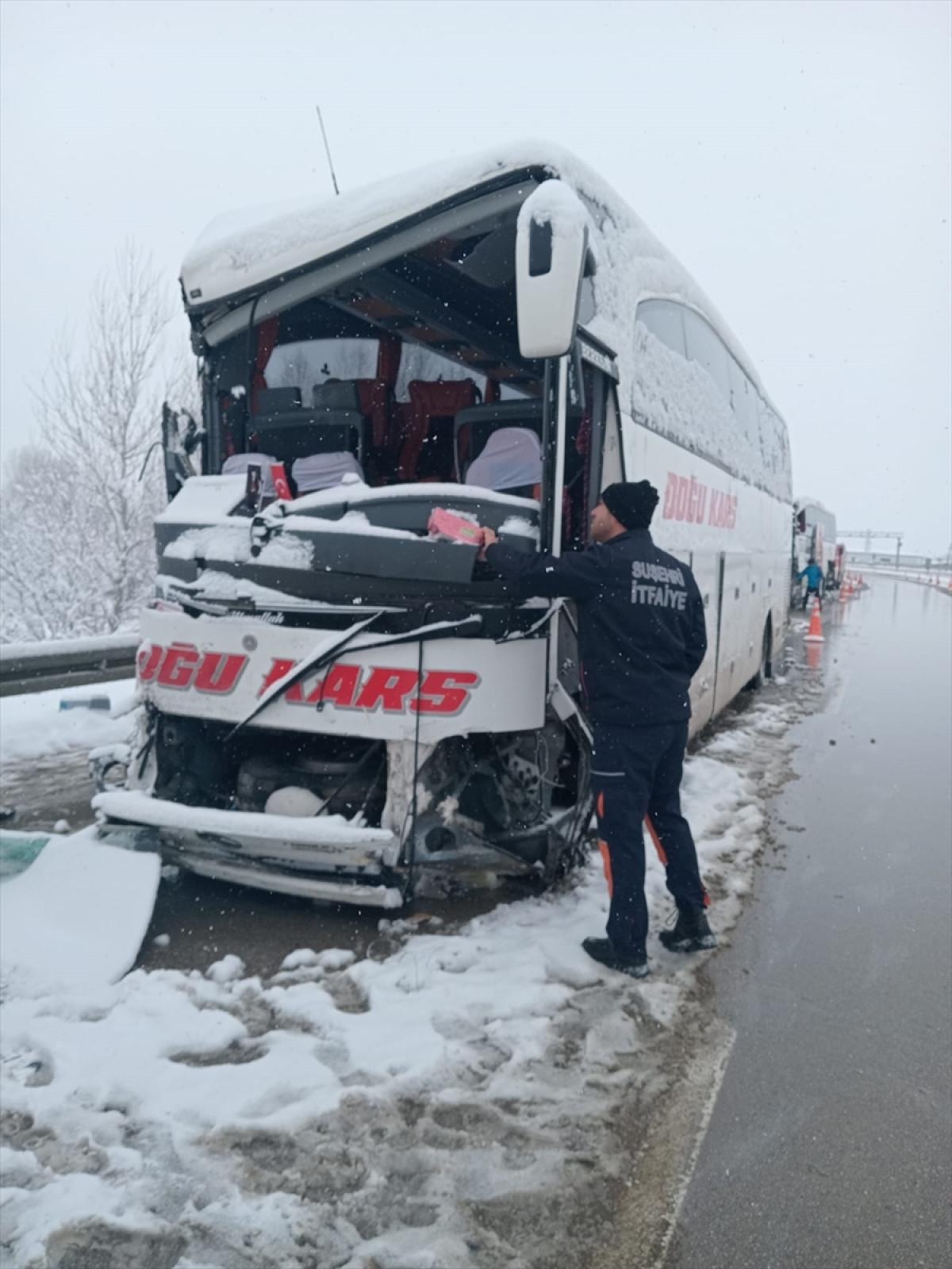 D-100 kara yolunda seyreden yolcu otobüsü sürücüsü S.D., bilinmeyen bir nedenle direksiyon hakimiyetini kaybetti.