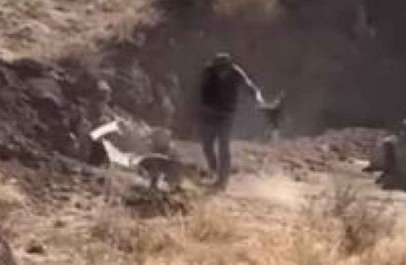 Elindeki sopayla köpeğe defalarca vuran İ.A., bir süre sonra alandan uzaklaştı.