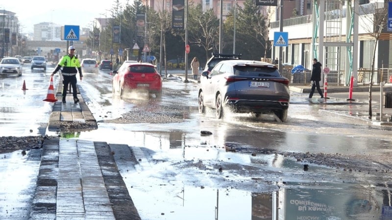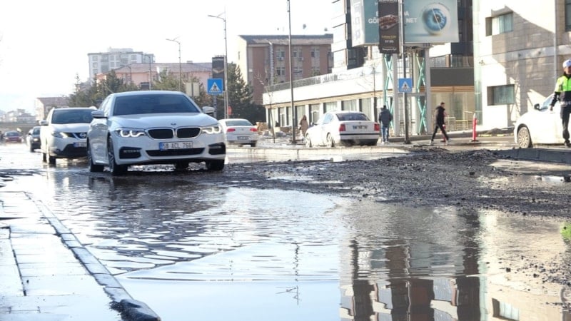 Kentte ana şebeke su borusunun patlaması sonucu cadde göle dönerken, bir kısmı çöken yol nedeniyle trafik aksadı.
