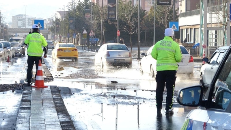 Kısa sürede çökmenin de yaşandığı yol, polis ekipleri tarafından trafiğe kapandı.