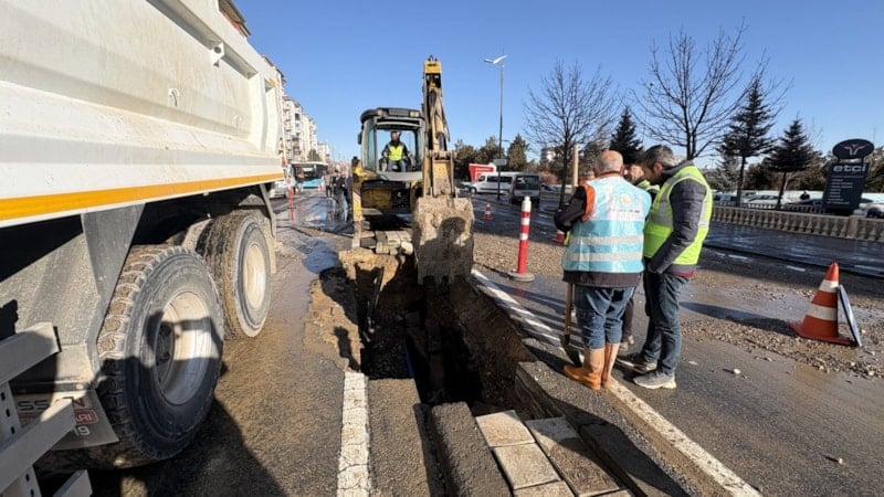 Kızılırmak Mahallesi Şehit Fethi Akyüz Caddesi'nde yolun altından geçen ana şebeke su borusu patladı.