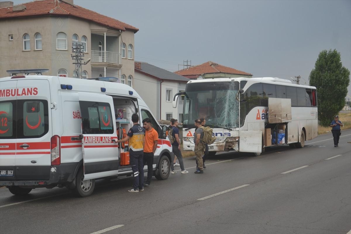 N.Ö. (59) idaresindeki 01 ANG 987 plakalı yolcu otobüsü, Kayseri-Sivas kara yolu Şarkışla ilçesi girişinde refüjdeki aydınlatma direğine çarptı.