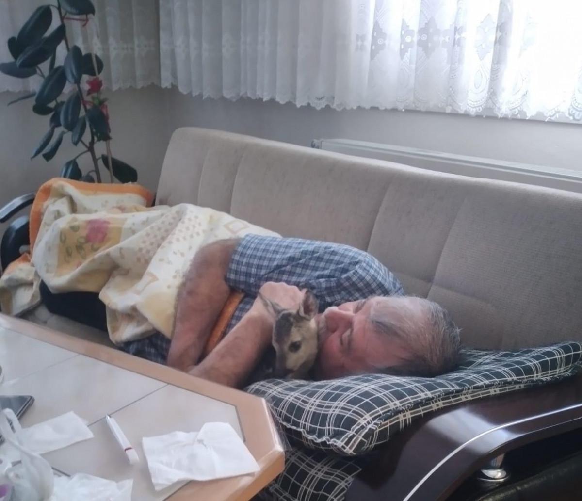 Yavruyu evine getiren Ülker'in, karacaya şefkatle baktığı anlar da cep telefonu kamerasıyla kaydedildi.