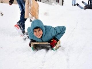 Yıldız Dağı Kış Sporları ve Turizm Merkezi'ne gitme imkanı bulamayan çocuklar, mahallelerinin çeşitli bölgelerinde, eğimli alanlarda kendi imkanlarıyla kayak keyfi yaptı.