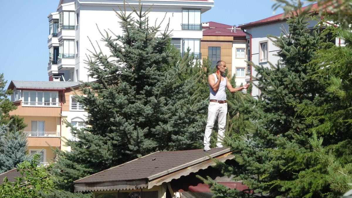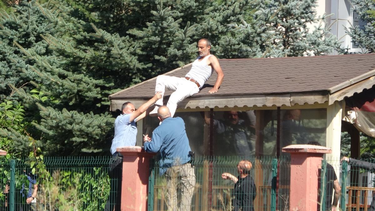 Yetkilileri çağıran Öz, emniyet ekiplerinin 2 saatlik uğraşları sonucu kendisine zarar vermeden çıktığı yerden indirildi.