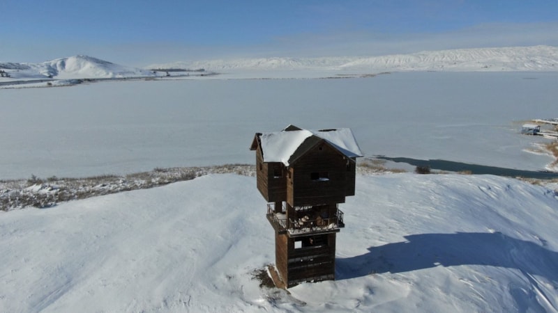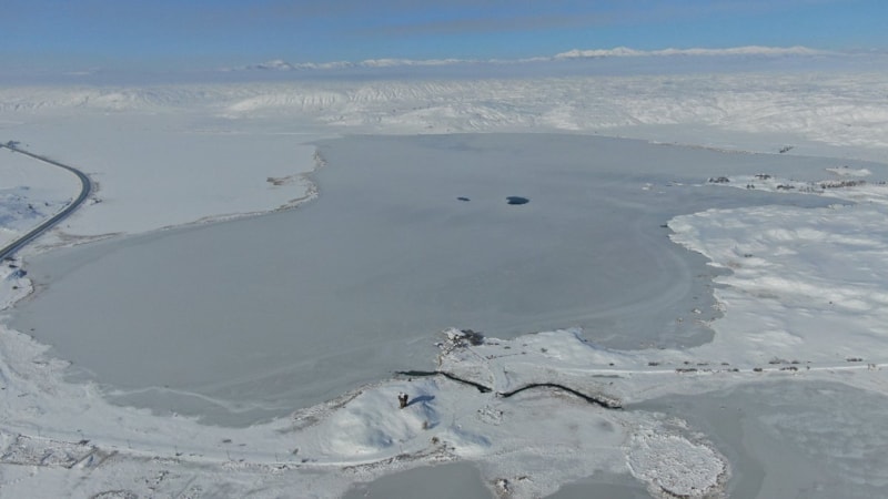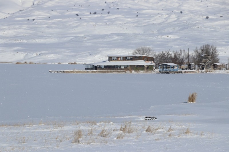 Kent merkezine 55 kilometre uzaklıkta bulunan ve efsanelere konu olan Tödürge Gölü, tamamen buzla kaplandı.