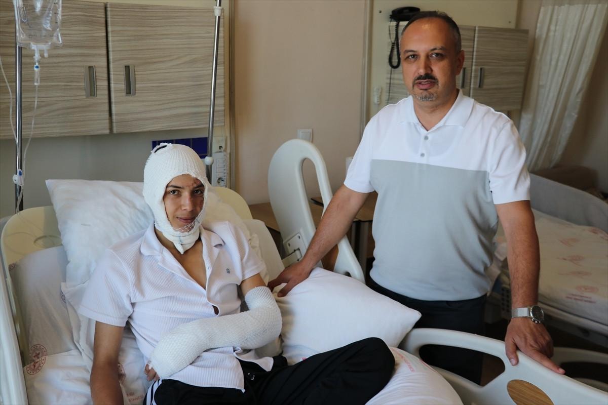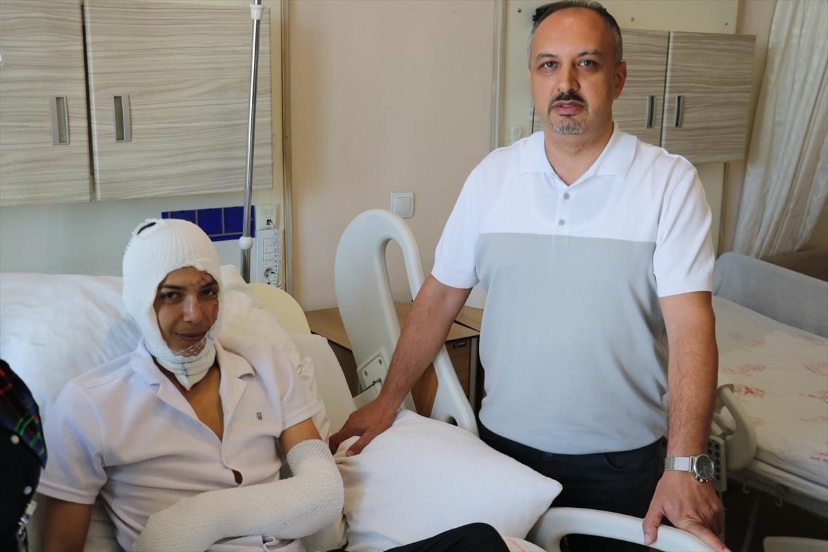 Numune Hastanesi Genel Cerrahi Uzmanı Opr. Dr. Gündüz Akgöl, hastanın yüzünde ve vücudunda yanıklarla acil servise başvurduğunu söyledi.