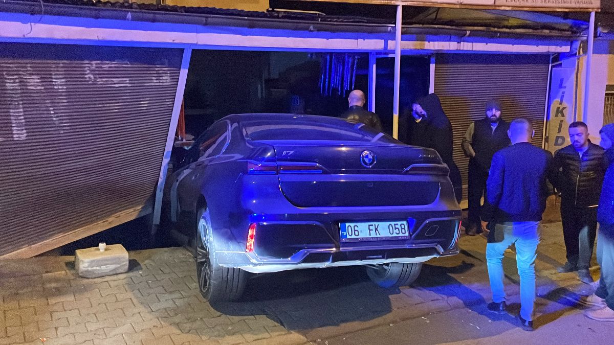 Kazada, dükkanda ve araçta maddi hasar meydana gelirken, olayla ilgili inceleme başlatıldı.
