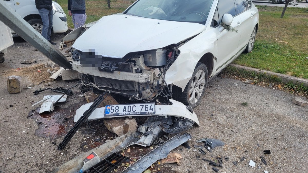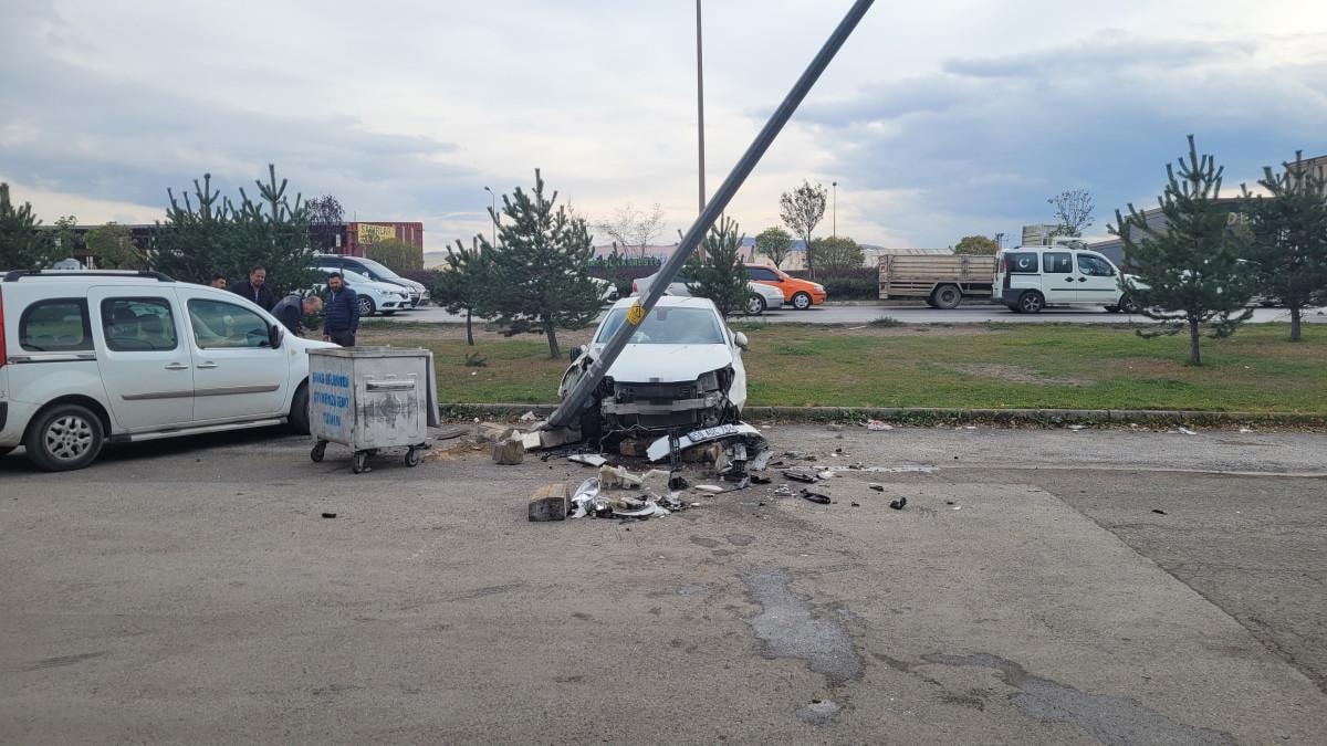 Otomobil ana yoldan çıkarak yol kenarındaki yeşil alanı geçip park halindeki iki araca ve aydınlatma direğine çarparak durabildi.