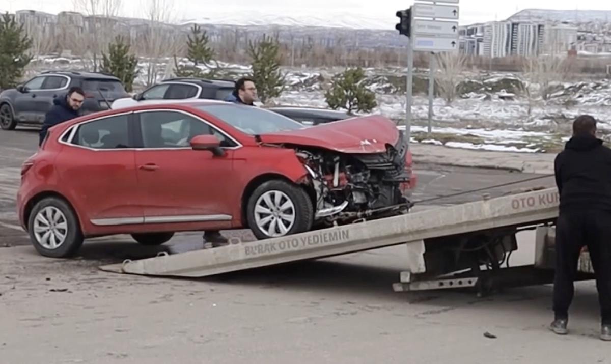 Sivas'ta O.Y. idaresindeki hafif ticari araç, A.A. idaresindeki otomobile çarptı.