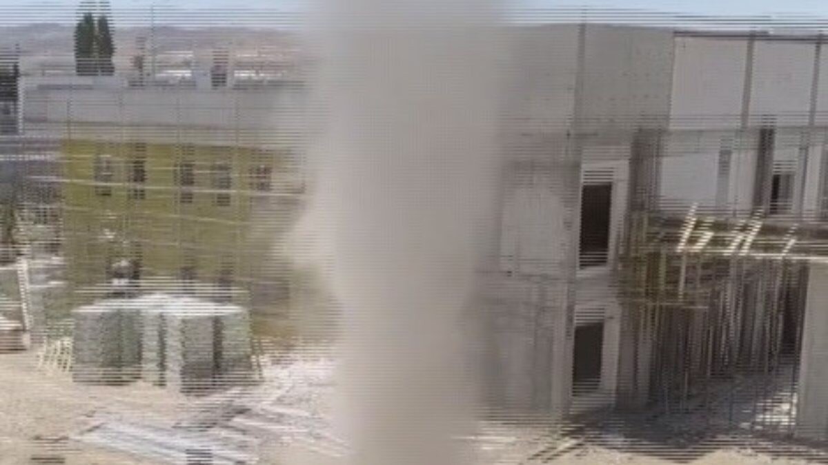 Sivas’ta Yenişehir Mahallesinde yapımı devam eden İtfaiye Binası şantiyesinde inşaat işçilerinin vinçte çalıştığı sırada aniden bir hortum çıktı.