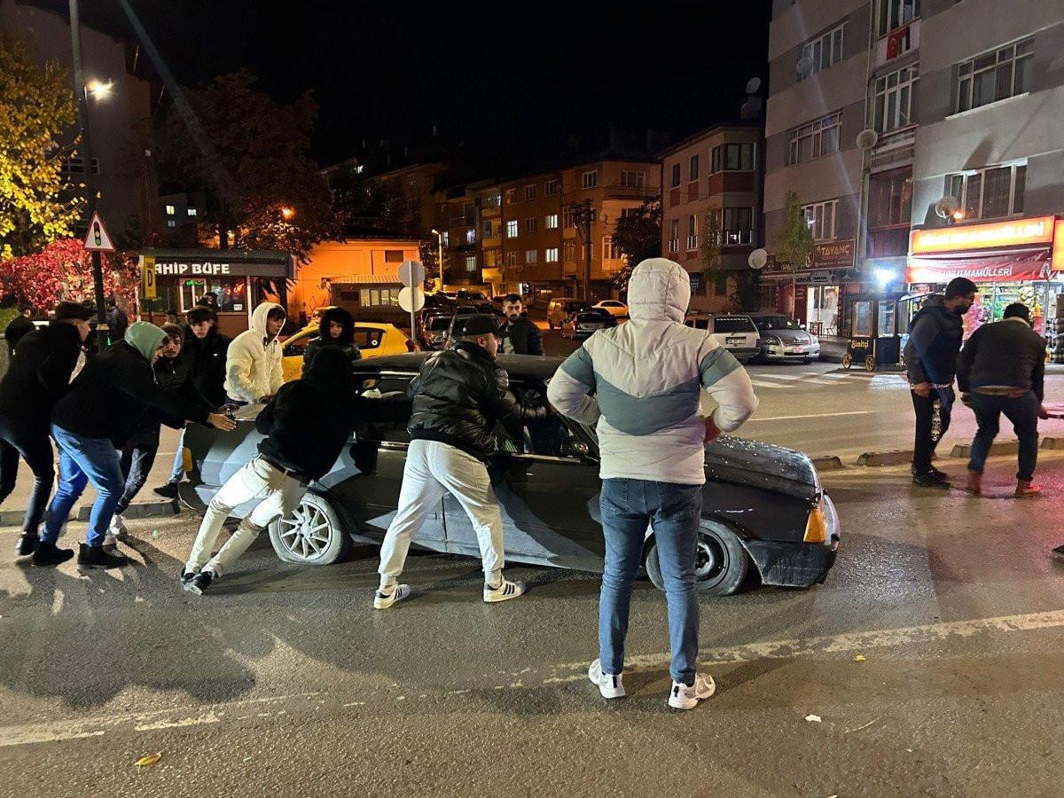 Otomobile zarar veren grup daha sonra havaya tabanca ile ateş ederek olay yerinden kaçtı.