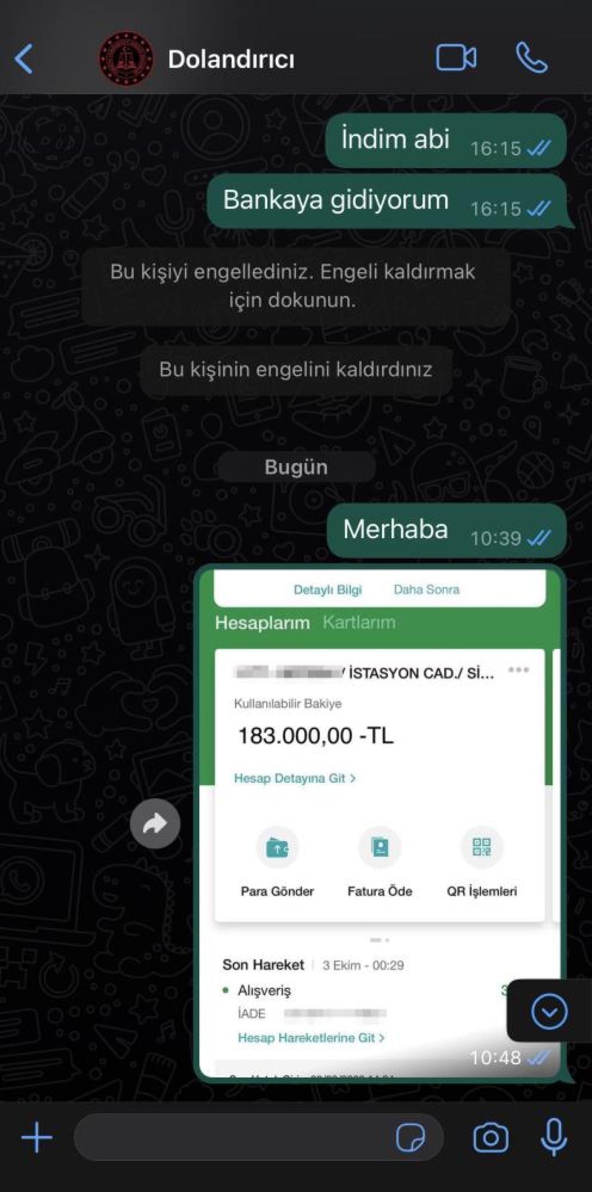 Buna inanan dolandırıcı, Çağlar’a 200 TL para gönderdi. Çağlar ve arkadaşları ise 180 bin TL’lik dekont yerine dolandırıcıya kahve içerken çekilmiş bir fotoğraflarını gönderip, “Senin para ile kahve içtik, hakkını helal et.” şeklinde mesaj attılar.