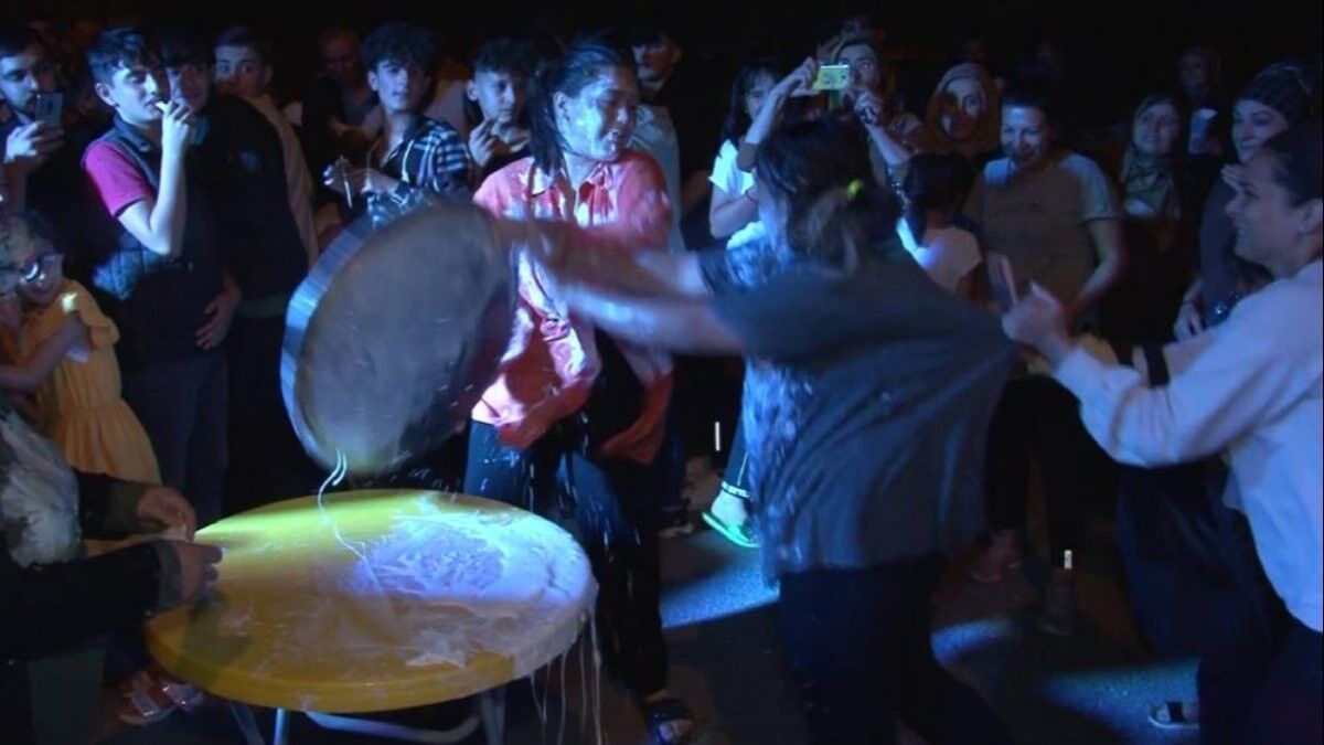 Öte yandan yoğurt içerisine saklanan altını arayan kadınlar arasında kavga çıktı. Tepsiler ve tekmeler adeta havada uçuştu.