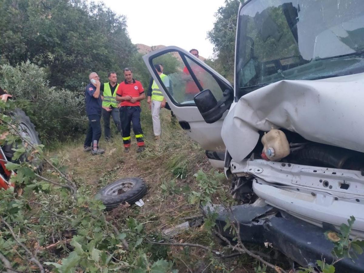 Kaza nedeniyle kamyon kasasında bulunan traktörde de hasar oluştu.