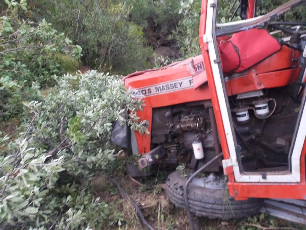 Sivas'ın Suşehri ilçesi Polat köyü yakınlarında E.E. yönetimindeki traktör yüklü kamyon şarampole devrildi.