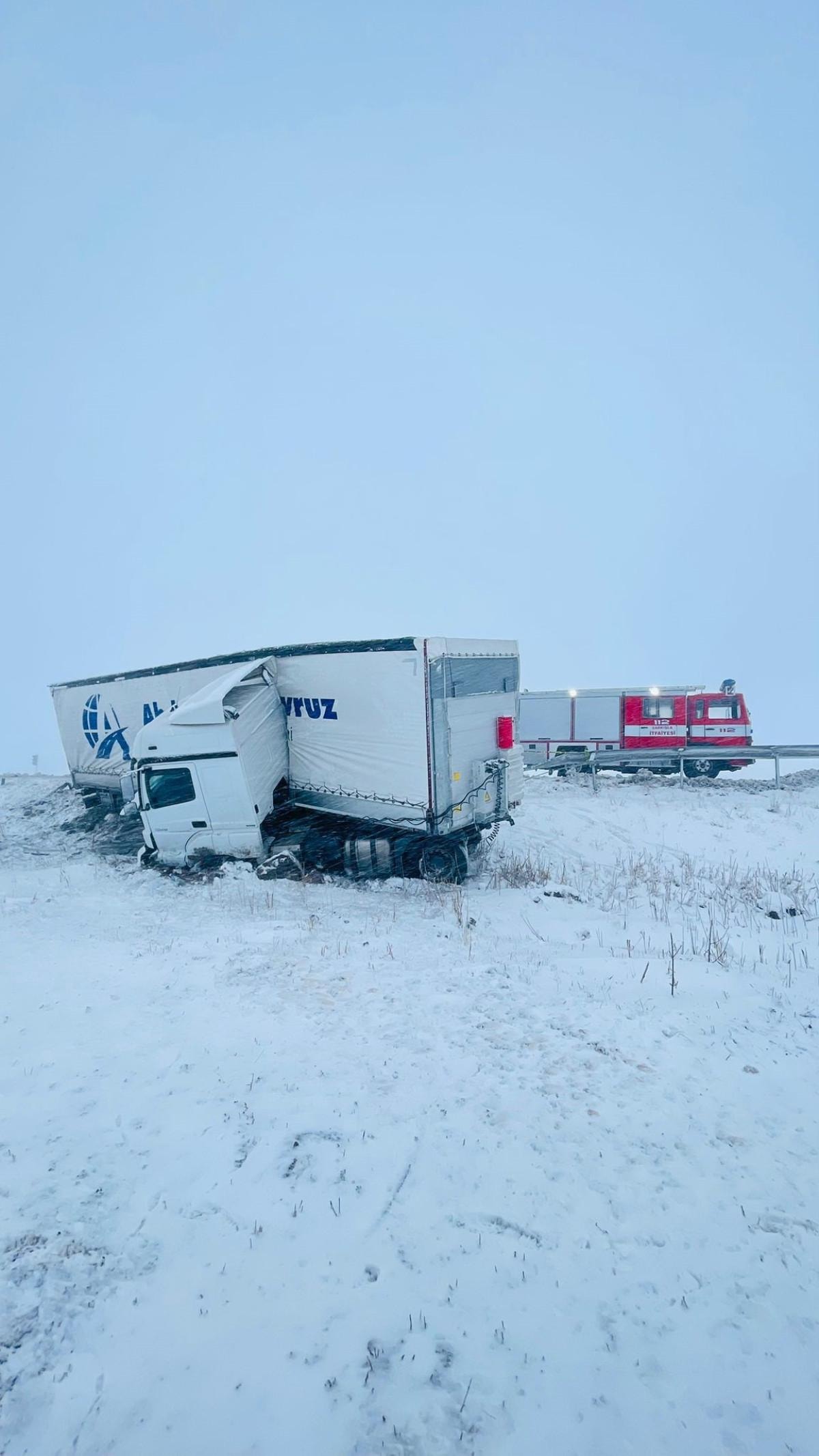 Sivas'tan yola çıkarak Sivas-Şarkışla yolu üzerinde seyreden tır sürücüsü M.G., Elmalı köyü yakınlarında kar ve fırtına nedeniyle görüş mesafesinin düşmesine bağlı olarak direksiyon hakimiyetini kaybetti