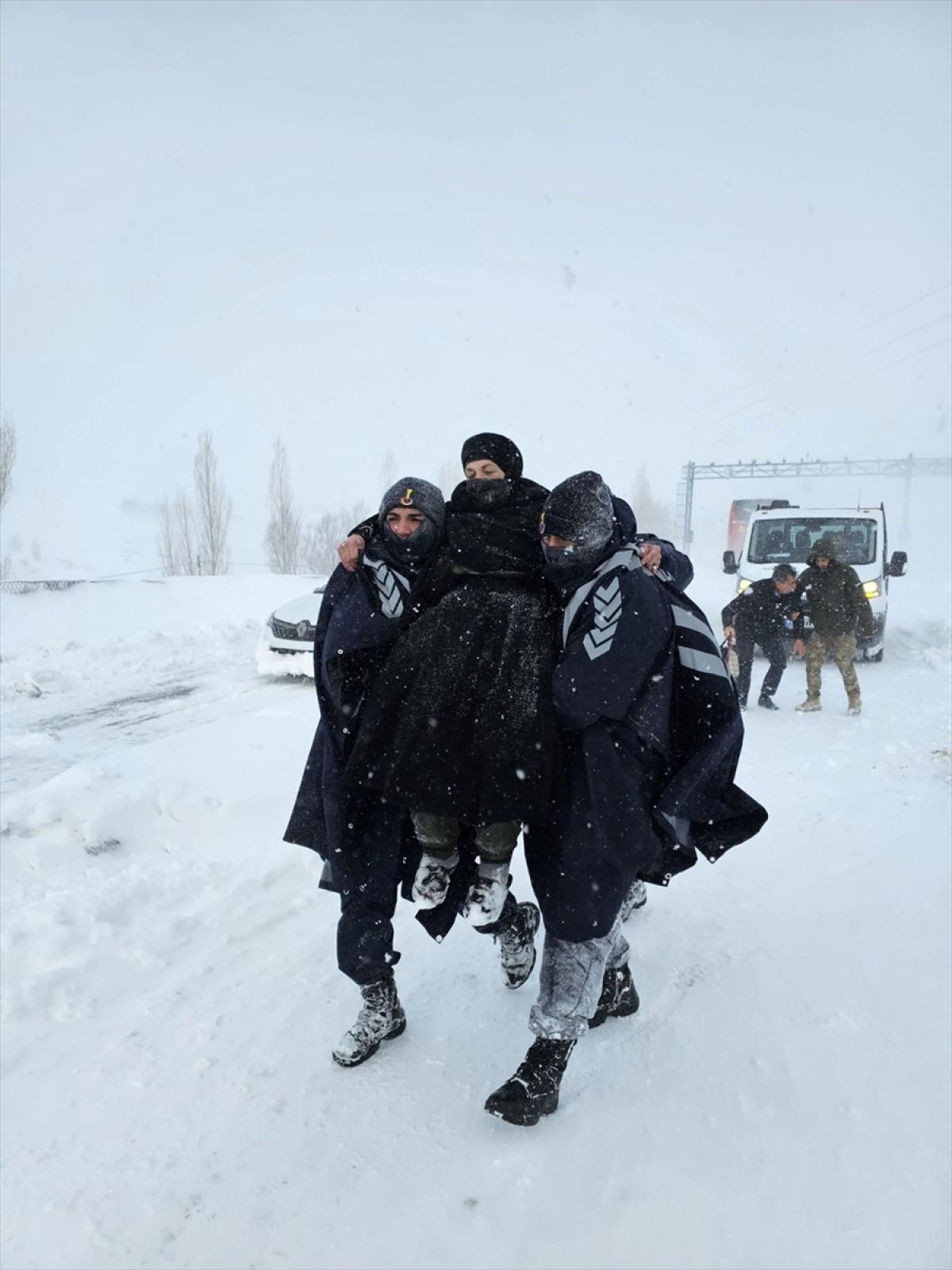 Jandarma ekipleri, kara saplanan araçları çıkarmak için küreklerle kar temizliği yaparken, arıza yapan araç sahiplerine de destek sağladı. Ekiplerin yardımları sadece araçlarla sınırlı kalmadı; yürümekte zorlanan yaşlı bir kadını, Gürün İlçe Jandarma Komutanlığından iki asker kucaklarına alarak güvenli bir şekilde jandarma aracına taşıdı. Bu örnek davranış, zor koşullarda dayanışmanın ve insanlığın en güzel örneği olarak hafızalara kazındı.