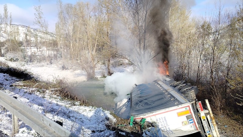 Koyulhisar ilçesinde kontrolden çıkması sonucu yol kenarına devrilip alev alan tırın sürücüsü hayatını kaybetti.