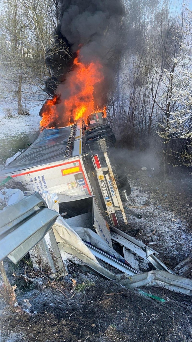 Yoldan geçen diğer sürücülerin ihbarı üzerine kaza yerine sağlık, polis, jandarma ve itfaiye ekipleri sevk edildi.
