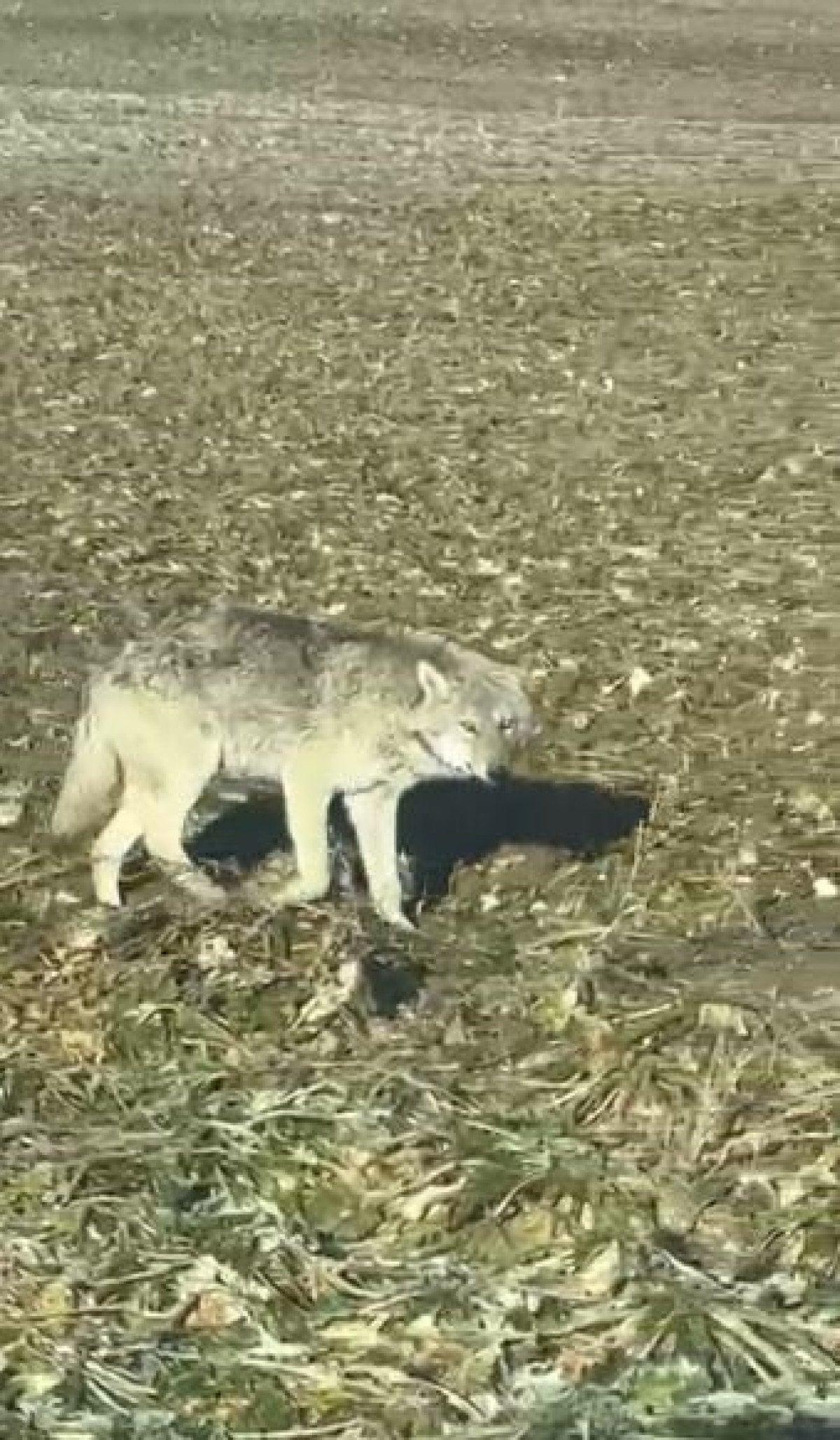 Aç kaldığı için çiftçiye yaklaştığı düşünülen kurtlar, tarlada fare avladı.