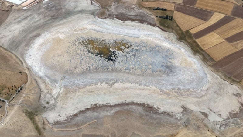 Göçmen kuşların sıklıkla görüldüğü gölden geriye tuz tabakası kalmıştı.