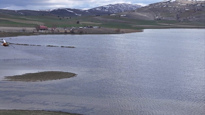 Sivas'ta yaz aylarında tamamen kuruyan Bingöl Gölü yeniden su tutarken misafirlerini beklemeye başladı.