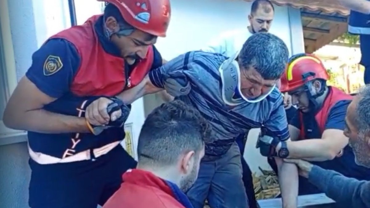 Adem Akar, kurtarılmasının ardından itfaiye personeline sarılıp ağladı.