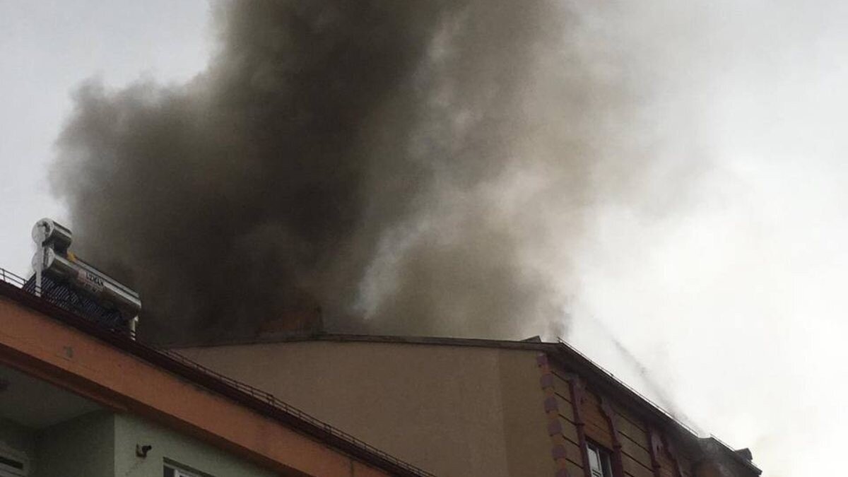 Olay yerine kısa sürede gelen ekipler, dumanlarla kaplanan çatıdaki yangına müdahale etti.