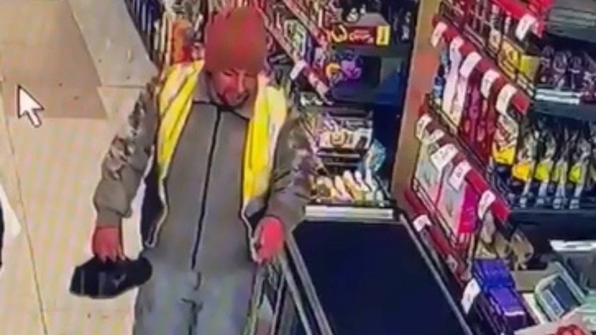 İşçinin ayakkabılarını çıkarak alışveriş yaptığı o anlar, marketin güvenlik kamerasına yansıdı.