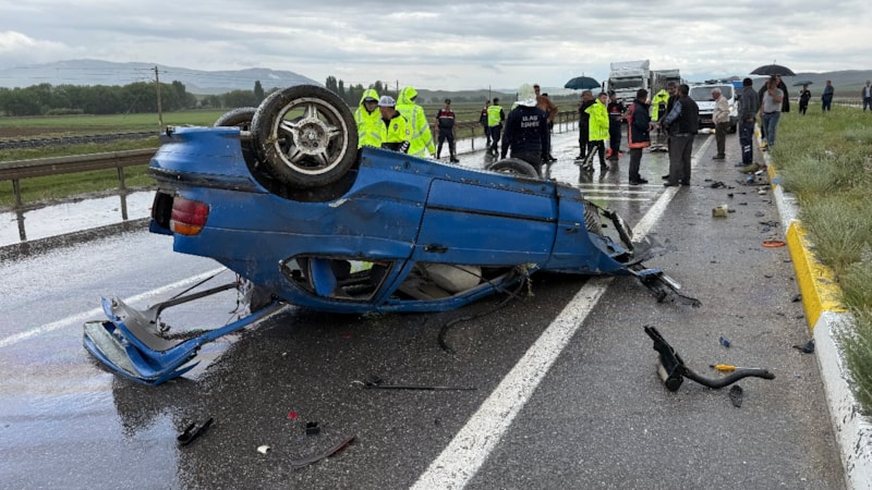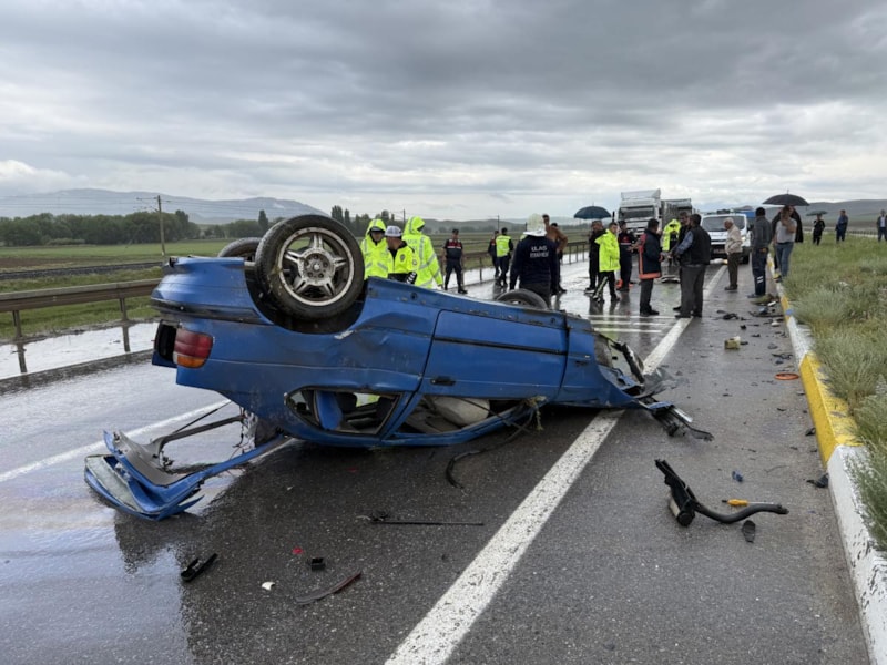 Kaza, bugün saat 15.30 sularında meydana geldi. Umut Akbulut (25) yönetimindeki 54 SC 518 plakalı otomobil, Sivas’tan Ulaş istikametine ilerlerken yağış nedeniyle kayganlaşan yolda kontrolden çıkarak refüjü aştı ve karşı şeride geçti. Karşı yönden gelen 58 NC 914 plakalı başka bir otomobille çarpışan araç, çarpışmanın etkisiyle yolda ters döndü.