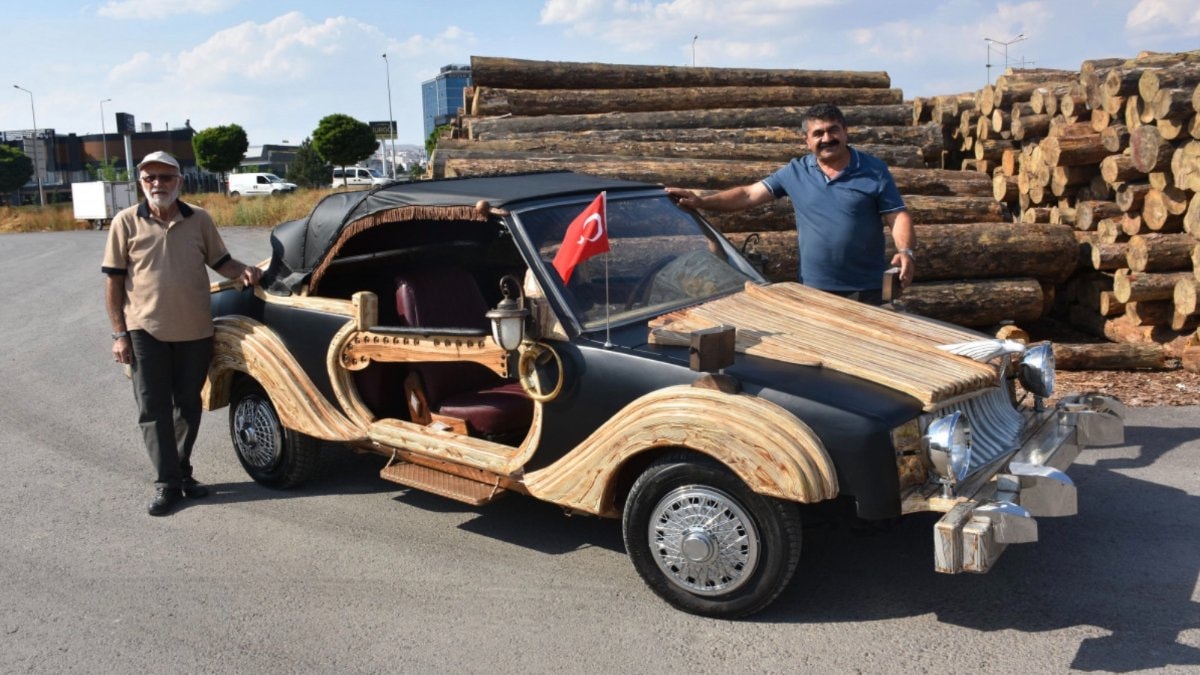 "Gidip ona uyacak bir araba aldık, onun da kaporta bölümünü kestik ve bu ahşaptan arabayı yaptık"