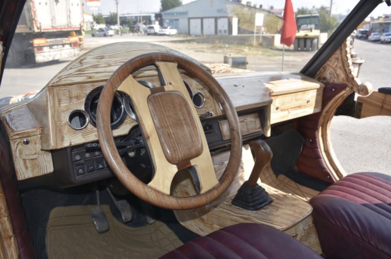İyidoğan ve Okurkan, 2021'de satın aldıkları 1990 model Tofaş Kartal marka otomobilin kaportasını tamamen söküp, aracı ahşapla kaplamak için kolları sıvadı.